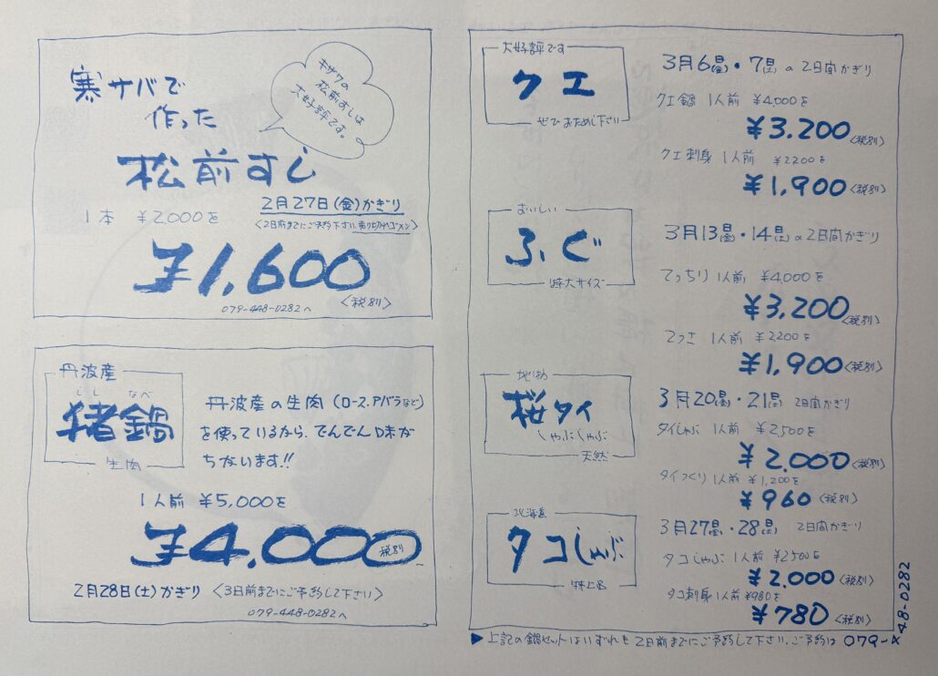 ⚠️猪鍋以外は全て2に前までにご予約ください